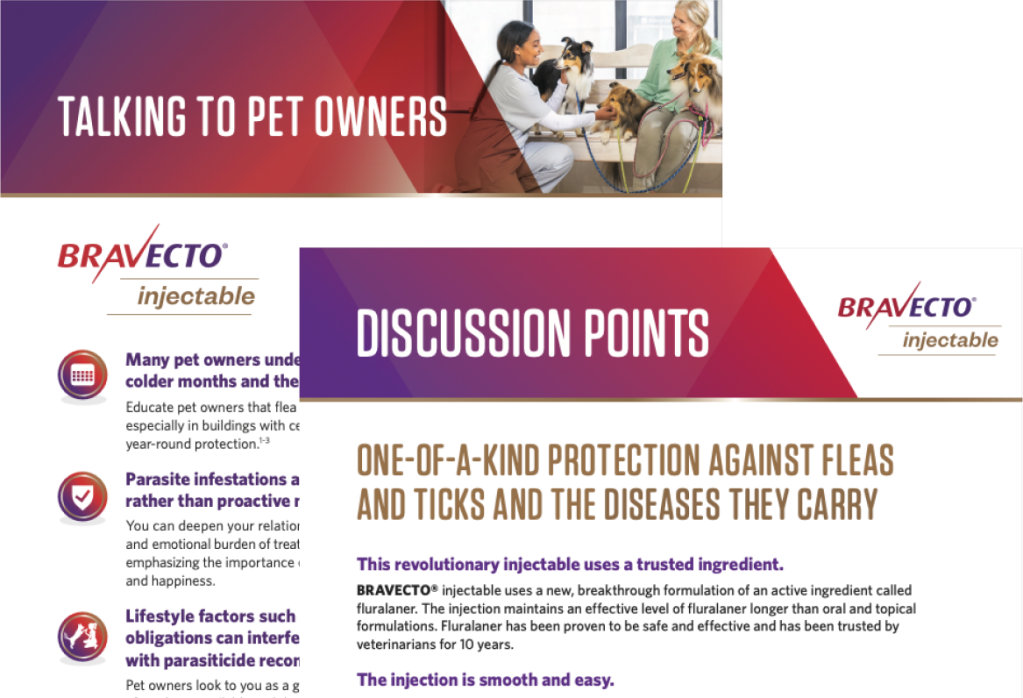 Download our one-pagers for effective conversations with pet owners about BRAVECTO® Injectable.