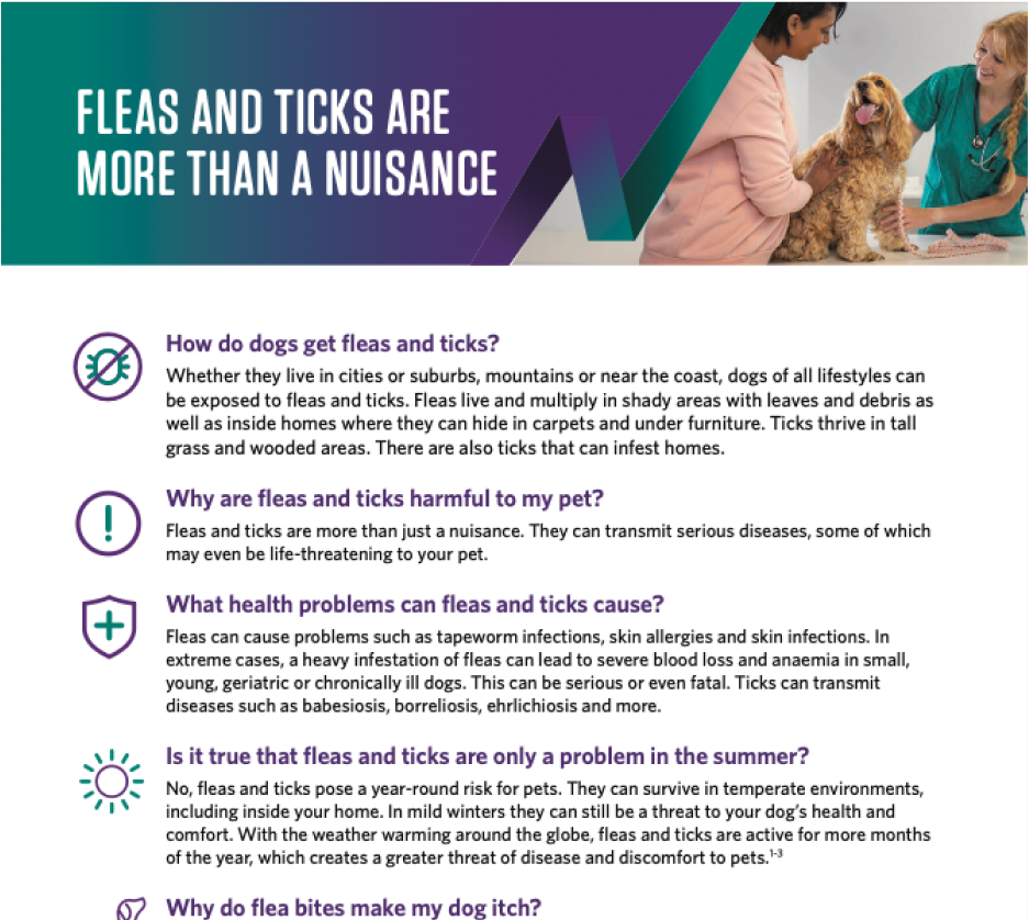 Our one-pager provides expert answers to common questions about fleas and ticks, supporting you in delivering exceptional care.